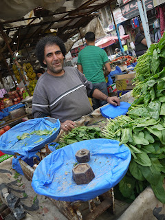 | 這位市場裡的老伯跟我借水喝,喝完大方送我一串甜葡萄 |